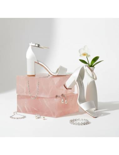 Comfortable wedding sandals for bride, with block high heels and pearls