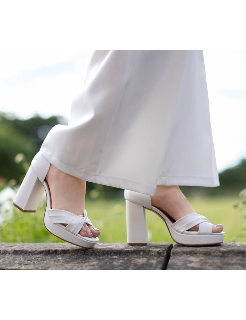 Wedding shoes, sandal style, ideal for summer weddings.7cm square wide heels.Padded interior and leather template.Sandals with a lot of style to combine with dresses where the shoe will be the center of attention.Stone strips on the front that give you style and a touch of glamour.