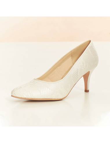 Classic style girlfriend shoes with 7cm high medium heels.Lightly tuned and covered with precious lace.this wedding shoe is perfect for most dresses and you will love your comfort.Padded Template.