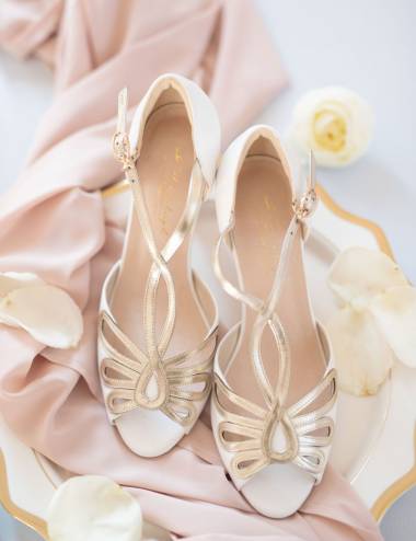 Open girlfriend shoes made in handmade leather.Beautiful golden detail in the form of butterfly in the front.Padded interior for total comfort.Average heels of 6,8cm