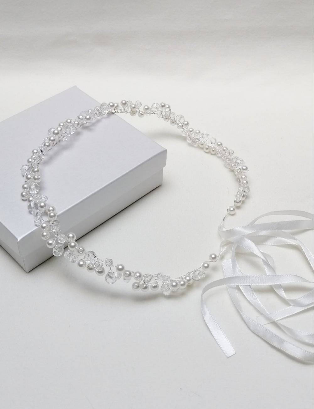 Bride wreath of pedour and perlite to tie with bonds of satin.Romantic and simple style