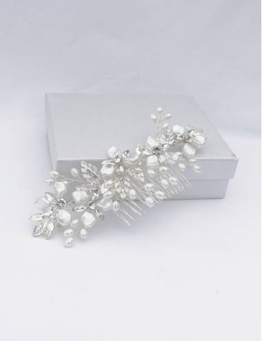 Handmade wedding touch, with glass pieces, black simile and metal pieces.Very elegant and natural to enhance your wedding look.Perfect for any wedding dress.