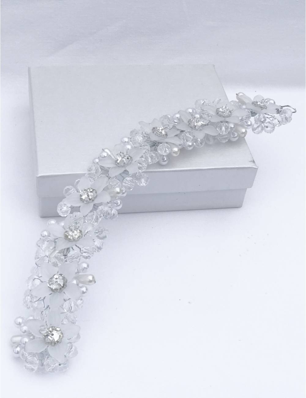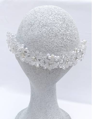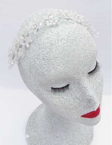 Handmade wedding touch with transparent glass flowers or can be customized with other colors in whole or in part.This piece can also be used as a belt for the wedding dress.