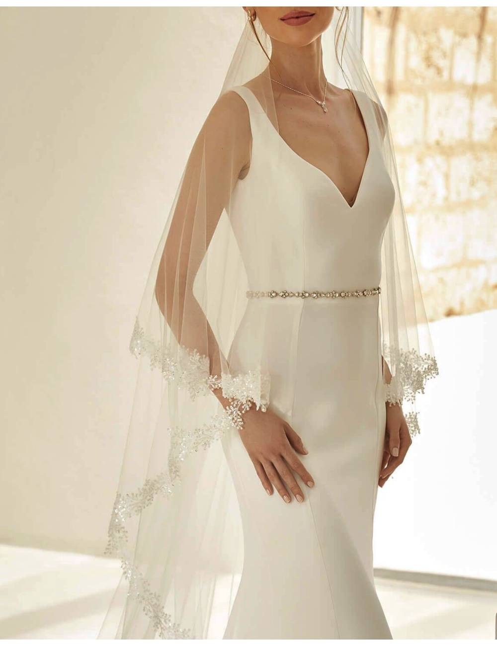 Bride veil elaborated in tul illusion with lace in all its perimeter.Measures 2m*3m