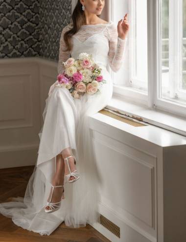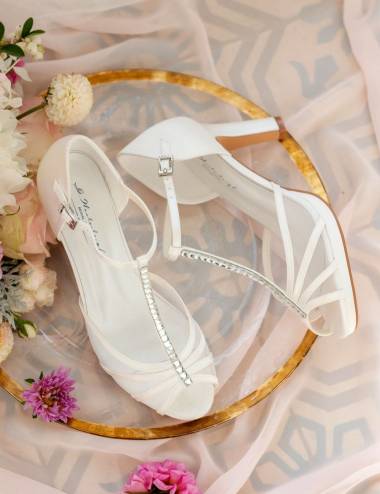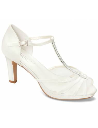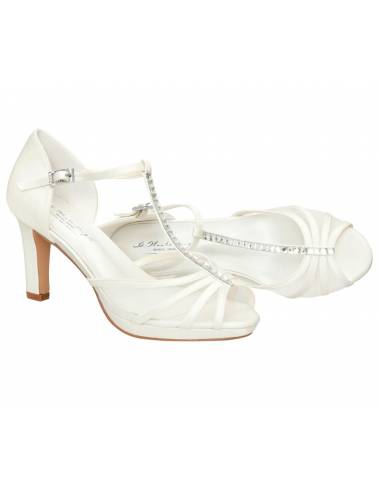 The perfect bride shoe!Broken coat.Absolute election!High heel and full trend width.Heel height 9.5cm.Compensatory front platform and padded template for greater comfort.Close strip to tie the ankle together to another Tbar that runs through the empeine.No doubt the most sought-after shoe!The perfect shoe for any wedding dress.