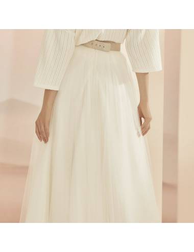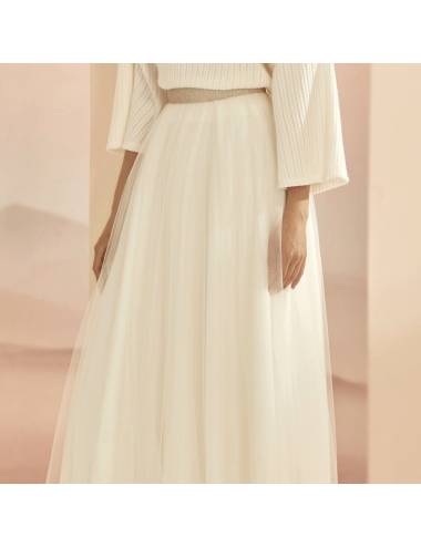 Falda larga de tul de calidad premium, forrada, para novias. Esta falda de novia de tul en color off white, tiene un diseño romantico siguiendo las tendencias mas actuales, y es ideal para crear tu conjunto de novia perfecto, haciendo un mix and match perfecto con nuestros boleros y abrigos. Podrás elegir entre múltiples opciones para tener el vestido de novia perfecto compuesto por varias piezas que se pueden mezclar en perfecta armonía de color, y materiales.